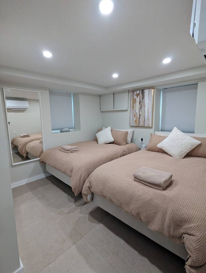 It is fantastic for a family stay, with many rooms and endless games. In addition, it is across the street from a children's park, tennis field, basketball court, and jogging path.